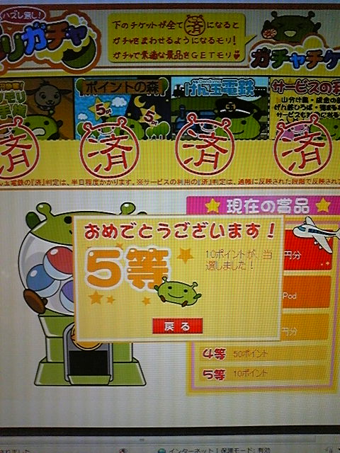 やはり見事なまでに5等!!! あーけーは2等のDSを狙っています いつかは当たりますようにo(^-^)o みなさん げん玉のガチャガチャ体験しましたか? ハズレがないのは嬉しいですね♪ PR COMMENTS無題ガチャガチャやるには、案件を1つこなさないといけないので、ガチャガチャ権利がもらえないんです(^^;)☆