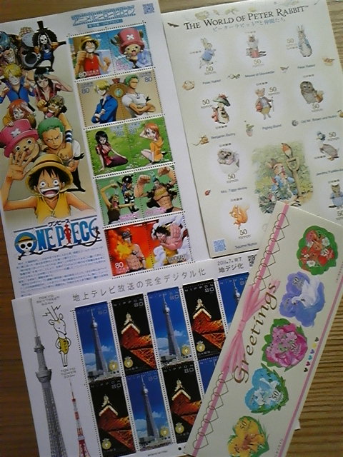 えっちら・おっちら行ってきました! 小雨の中のお散歩もまたいいものです♪ 切手を買っておこうと見ると 発見!!! ワンピースがあるぅ~!!! ピーターラビットやスカイツリー(先日テレビで見たやつだ!) こんなに買うつもりじゃなかったのに 2350円分も購入しちゃったよ ![]() ワンピースは使わずにコレクションします♪ 別に切手おたくではないのだけど お気に入りはとっておいてあって ![]() ずーーーっと前に未来少年コナンも購入してたんですよね このアニメシリーズはいつまで続くかな? たまにふらりと郵便局に行くと 思いがけない切手との出会いがあります♪ なぎさ☆さん 記事を書きなおそうとしたらコメントが消えてしまいました ![]() せっかく頂いたコメントを消してしまって ほんとにごめんなさいm(__)m 辻利&検診京都宇治 辻利の