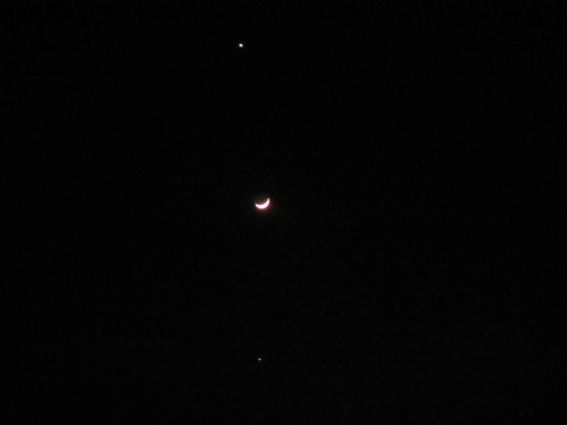 ニュースで知りベランダに行ってみると いつもの点滅になってました・・・ 見るのが遅かった ![]() でもその代わりに素敵なものが見れました ![]() 今夜は月がキレイだなぁ~と眺め いつもと違う月とその他の星の輝きに ![]() なんとなく写真を撮ったんですが・・・ 今朝になってそれが何だったのか知りました!!! 金星 月 木星 その3つが縦に並んだ状態だったそうです! 偶然にも見れたことにめっちゃ感動~ ![]() ほんとにすごくキレイでした ![]() 写真をクリックすると大きくなります♪ 上から 金星 月 木星 と並んでいるんですが 木星の光が薄いのでちょっと分かりにくいでしょうか? 肉眼ではもっと光ってキレイだったんだけど レンズを通すと駄目なようです ![]() |