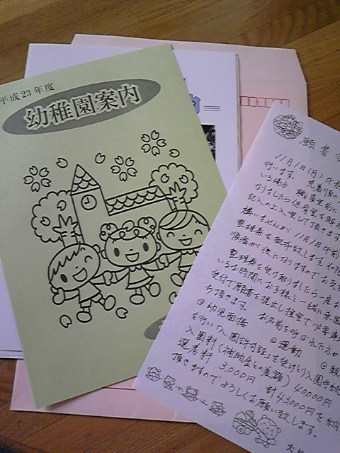 ちょっと緊張気味に願書を頂きに出発! 出迎えていたのが、お母様先生と言われてる古くからいらっしゃる先生。 簡単にいえば『ボス先生』です(^^;) でも凄いですね、先生の記憶力には脱帽です! 『お久しぶりです~、運動会にいらっしゃってたって聞いたんですよ~。 〇〇ちゃんは元気ですか?』 すっげ=!覚えてるよ~!卒園して3年経ってるのに・・・ 私の顔も覚えてるってのにも尊敬します! しかし運動会は誰から聞いたんだ? 知ってる先生とは会ってなくて挨拶してないし何で知ってるの? 恐るべし!でも歓迎モードは嬉しい限りです♪ 私の顔を見るなり、願書の封筒を渡してくれて 封筒にはちゃんとあーけー様と書かれてるではないですか ![]() ほんと嬉しいです、3年経ってるのに覚えててくれるなんて感激だよぉ! 優先で入れるので、願書提出日の当日は指定の時間に来てください。 今月末に連絡しますって言われてホッとしました~> でも入れると保証されていても、やっぱりドキドキだな~。 チビ君も幼稚園かぁ~早いな~もう少し側に置いていたかった ![]() パンフレットは昔と変わらず・・・ 無料配布の願書にもありがたかったです。 お姉ちゃんの時は、違う幼稚園ですが願書料金1000円~1500円だったので 数件から願書を頂いたのでかなりの出費となったんだよね。 これから、選考料金3000円 入園料金4万円と掛るので 無料だとほんと助かります♪ 帰り際、幼稚園バスを見てチビ君大喜び ![]() 来年からは乗れるんだよ~って話すと、乗る~ってニッコニコ♪ あーけーは寂しいが、チビ君は楽しみのようです。 PR COMMENTS無題ずっと覚えてくれている先生、ステキですね~(^^)